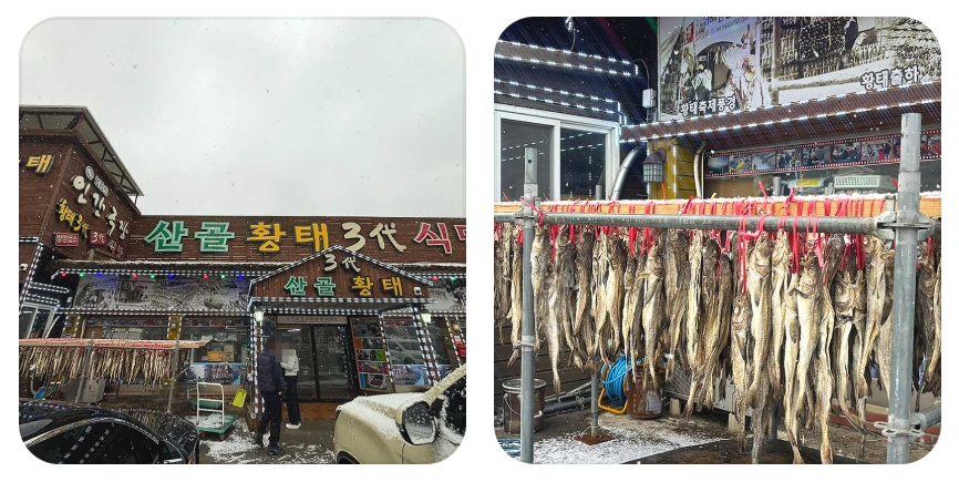 인제는 겨울철 매서운 칼바람과 폭설, 그리고 봄이 오기 전까지 반복되는 해동의 과정을 거치며 명태가 황금빛 황태로 거듭나는 최적의 지리적 조건을 갖춘 곳입니다. 이곳에서 3대째 가업을 이어오며 황태의 본질적인 맛을 지켜가고 있는 산골황태3대식당의 기록을 통해, 단순한 음식을 넘어선 세월의 깊이를 함께 나누어보고자 합니다.