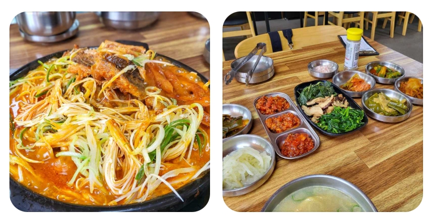 이곳의 대표 메뉴인 황태국밥은 보는 것만으로도 속이 풀리는 듯한 뽀얀 국물이 일품입니다. 일반적인 맑은 국물과는 달리, 오랜 시간 정성껏 고아낸 국물은 마치 사골 국물을 연상시킬 정도로 진하고 담백한 풍미를 자랑합니다. 방송에서는 황태를 들기름에 달달 볶아 고소함을 극대화한 뒤, 비법 육수를 붓고 푹 끓여내는 과정을 보여주었습니다. 이 과정을 통해 황태의 영양 성분이 국물에 충분히 녹아들어, 한 숟가락을 뜰 때마다 입안 가득 퍼지는 구수함이 일품이라는 평가를 받았습니다.