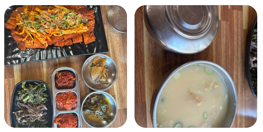 국밥 속에 넉넉히 들어간 황태 살은 입안에서 부드럽게 흩어지며, 함께 들어간 콩나물과 대파는 시원한 끝맛을 더해줍니다. 특히 황태는 간 해독에 탁월한 메티오닌과 리신 등 아미노산이 풍부하여 숙취 해소뿐만 아니라 기력 회복을 위한 보양식으로도 손색이 없습니다. 정갈하게 차려진 산나물 반찬을 국밥 위에 얹어 먹으면 강원도 산골의 건강한 기운이 몸속 깊숙이 전달되는 기분을 느낄 수 있습니다. 자극적이지 않으면서도 깊은 울림을 주는 이 국물 한 그릇은 먼 길을 달려온 여행자들에게 따뜻한 위로와 휴식을 제공합니다.