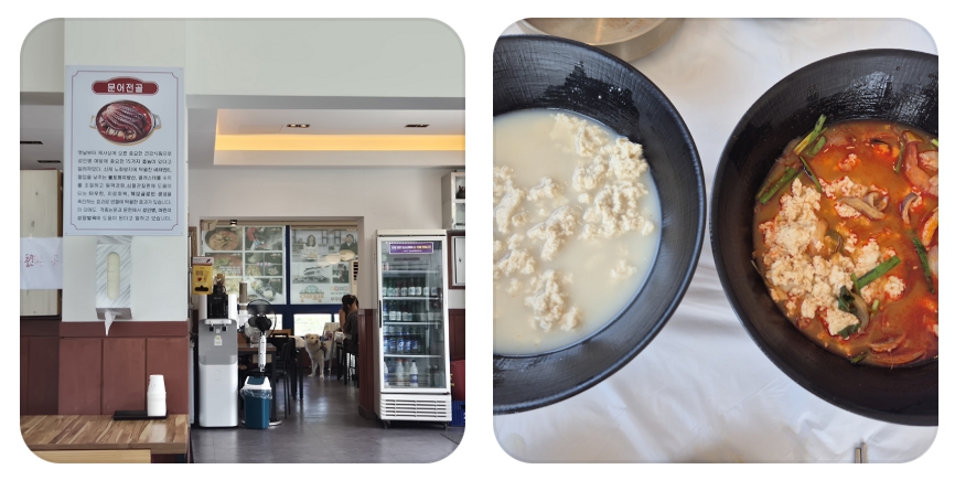 함께 차려지는 밑반찬들 역시 순두부의 맛을 해치지 않으면서도 조화롭게 어우러지는 정갈한 구성으로 준비됩니다. 강원도 특유의 소박하면서도 깊은 맛이 느껴지는 찬들은 백반의 완성도를 한층 높여줍니다. 10,000원이라는 합리적인 가격에 즐길 수 있는 이 한 상 차림은 단순히 배를 채우는 음식을 넘어, 만드는 이의 정성과 지역의 역사를 함께 대접받는 듯한 기분을 느끼게 합니다. 많은 단골손님이 이곳을 다시 찾는 이유는 화려한 기교보다는 기본에 충실한 이 담백한 맛이 주는 편안한 위로 때문일 것입니다.